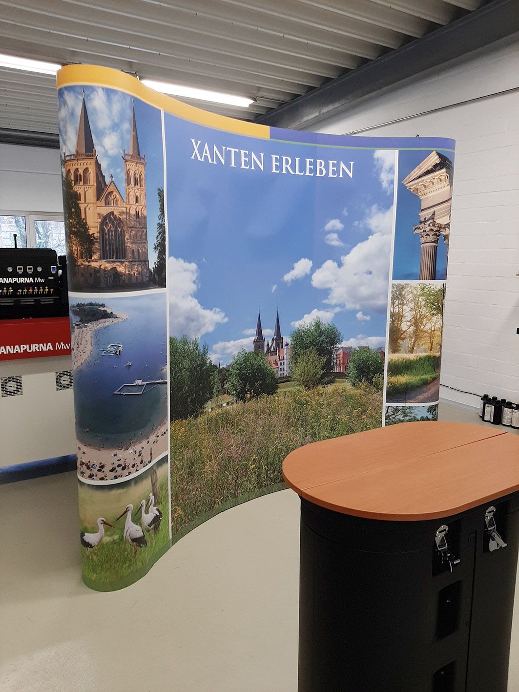 - Wandrahmen mit Stoffbannern
