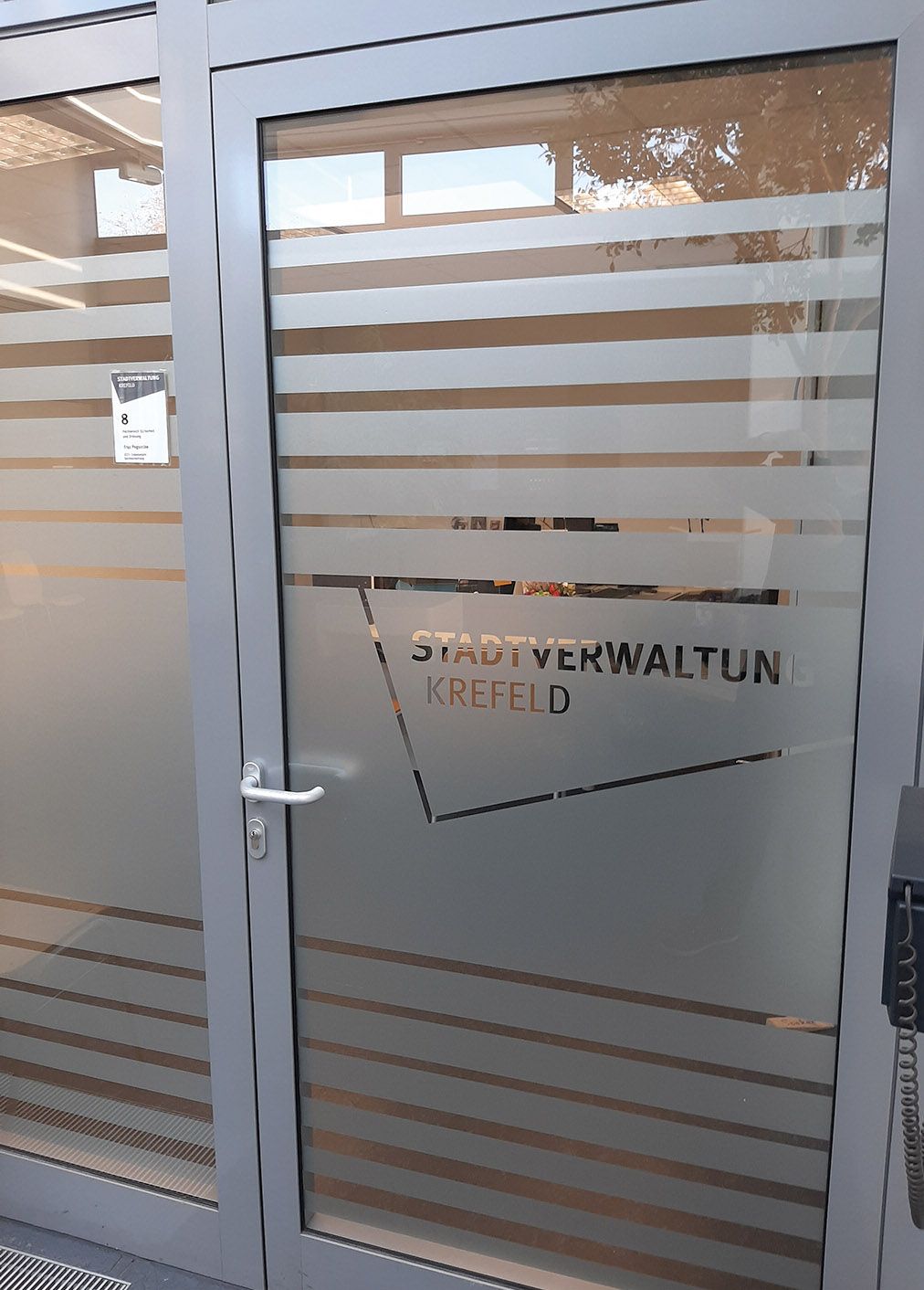 Fenster oder Türen können komplett randlos und damit blickdicht foliert oder auch durch Einbringung von Logos oder Schriftzügen und beispielsweise Streifenmotiven optisch aufgewertet werden. Es ergibt sich eine moderne, zeitgemäße Ausstattung der Arbeitsumgebung.