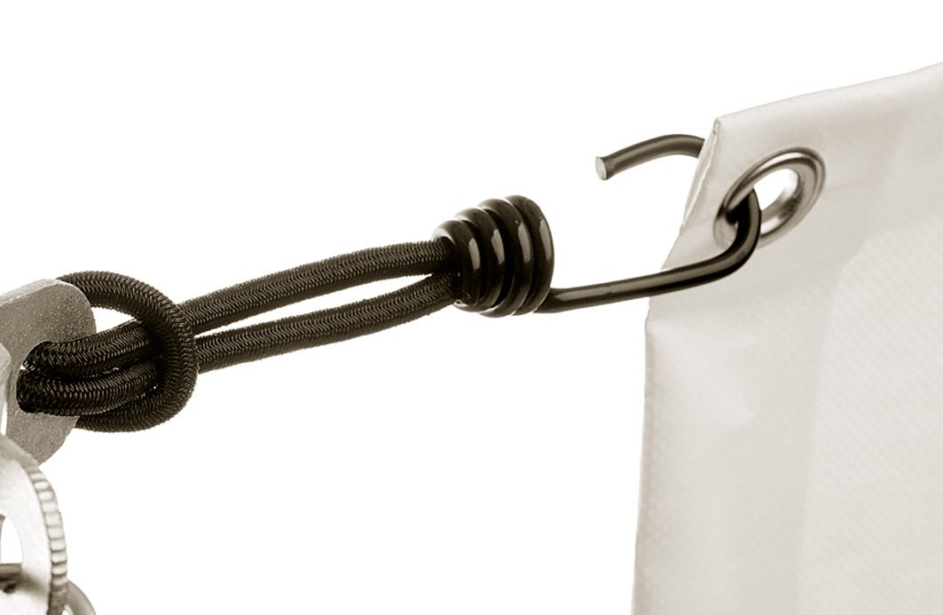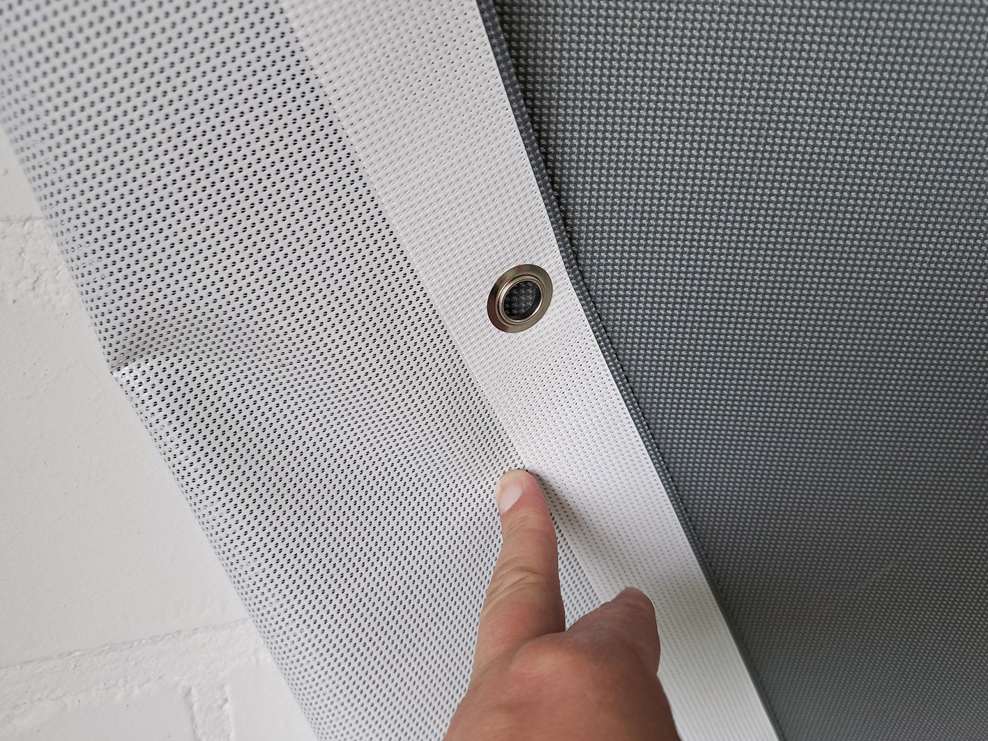Diese Banner können mit einem Hohlsaum verstärkt werden und sind jeweils rundum mit Ösen zur Befestigung bestückt. Hier kommen in der Regel Spanngummis oder Kabelbinder zum Einsatz.